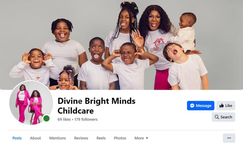 This childcare actually teaches kids they don't just sit around watching TV or playing there is always a little bit of everything going on my girls love it there and they have learned so much in just couple months, and they can't wait to go to their care everyday. they are actually eager to go everything day thanks to Ms. Deayeah for all she does for our little ones. Any parent who needs a worry-free childcare for your childcare I highly recommend you check out Divine Bright Minds it's a very welcoming environment all the kids there right now love it.